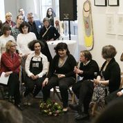 ← Zurück Weiter → Talk 2 mit Rosanna d´Ortona (Leiterin Kaffeebar), den Künstlerinnen Nicole Baginski und Susanne Kümpel, Jutta Pöstges (Leiterin Kunsthaus) und Paul Spitzek vom Kaffeebarteam